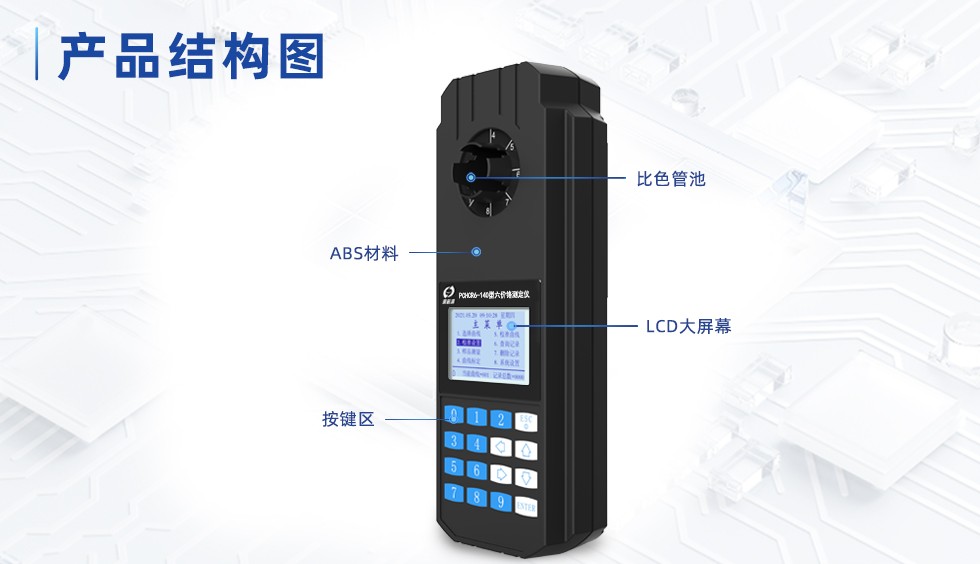 | 儀器名稱(chēng) | 便攜式六價(jià)鉻 | 儀器型號(hào) | PCHCR6-140 |