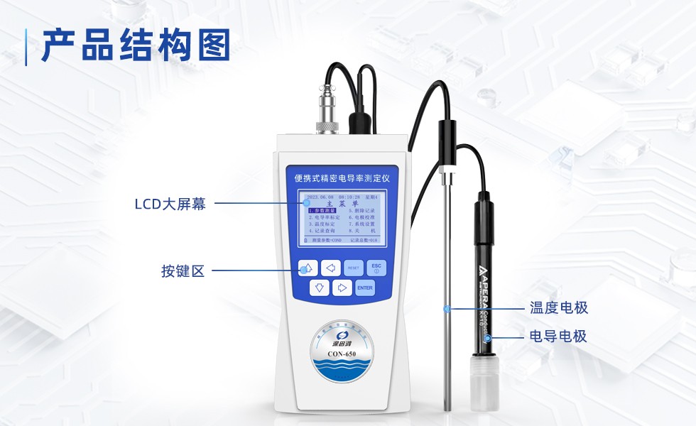 3. 支持測(cè)量電導(dǎo)率、鹽度、TDS和溫度。